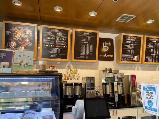 Caffe Bene offers amenities such as Takeout, Wheelchair Accessible, Good for Kids, Pets Welcome, Lunch, Casual Ambiance, Accepts Contactless Payments, Takeout, Wheelchair Accessible, Good for Kids, ensuring a comfortable and convenient experience for clients.